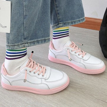 Color Block Flat Heel Lace-up Sneakers. SKU: ML-0134. Occasion: Casual. Outdoor. Styles: Comfort. Round Toe. Color: Pink....