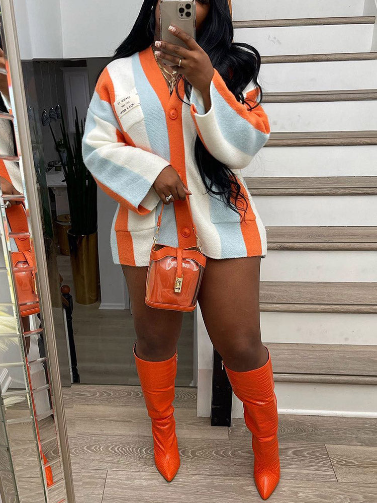 DETAILS Cardigan Button. pockets Color block Knit & Cotton One size fits up to XL SIZE CHART...