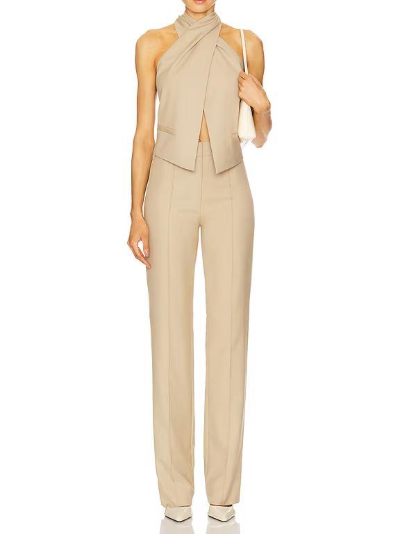 Sleek and modern. the Cross Halter Neck Vest Top is a refined staple with a contemporary edge. Crafted from lightweight twill fabric. it features a sophisticated cross-halter neckline that adds structure and elegance. A concealed back zip closure ensures a seamless fit. while the front pockets introduce a subtle touch of functionality. Designed for versatility. this piece effortlessly transitions from day to night.