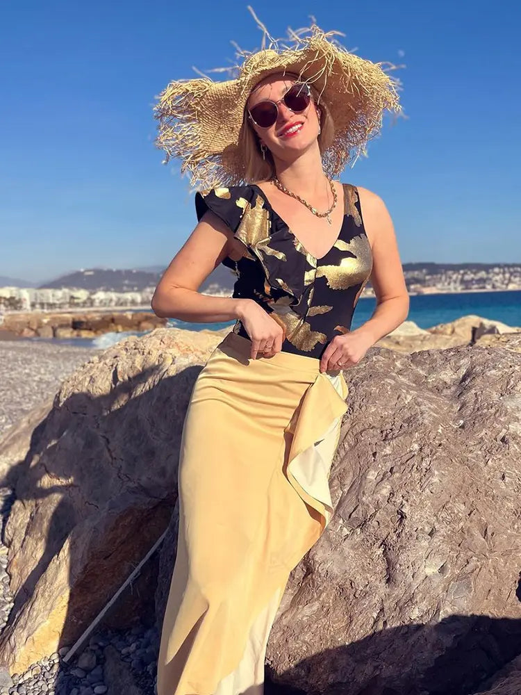Ideal for beach vacations. resort lounging. pool parties. and travel content creation where statement swimwear is essential.