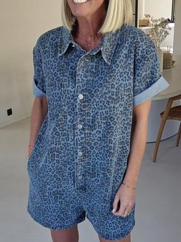 Meet your new off-duty favorite �the Jini Jeans Playsuit in Blue Leo. Crafted from a breathable cotton-blend fabric. this laid-back one-piece features an eye-catching leopard print with an effortlessly loose fit that's perfect for relaxed days or weekend getaways.