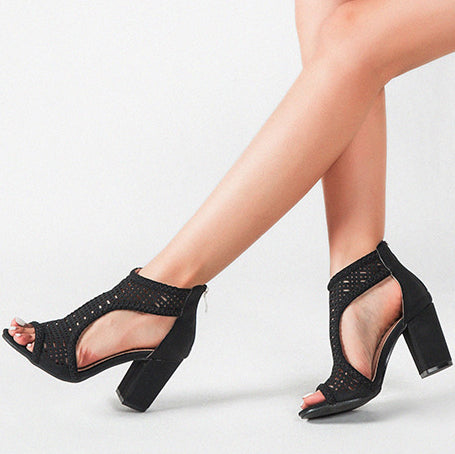 Peep Toe Gladiator Shoes Chunky Heel Sandals