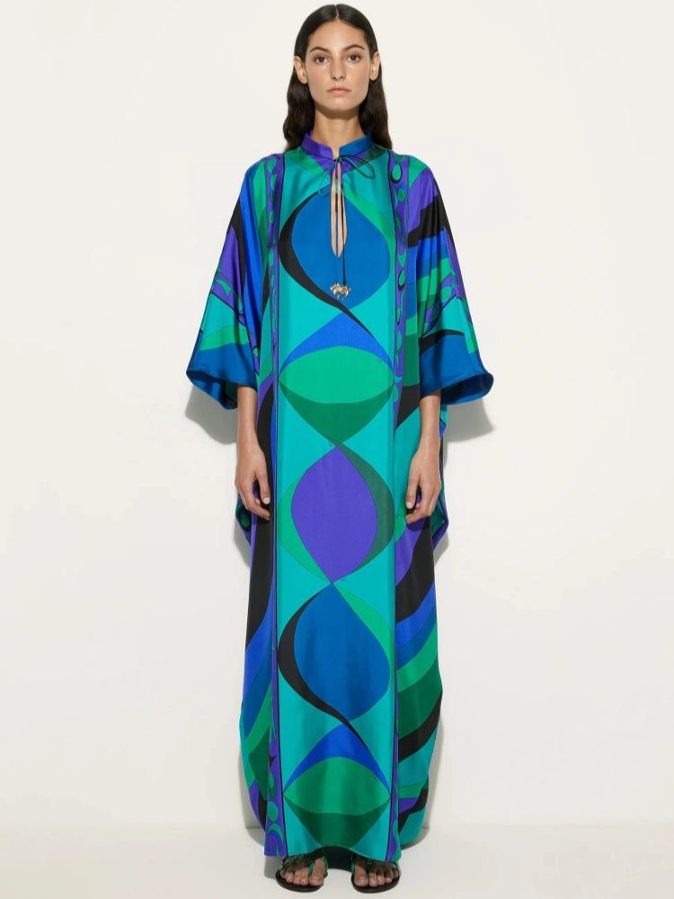 Whether you're lounging by the sea or heading to an artful soirée. this kaftan delivers undeniable presence with a touch of dreamlike flair.