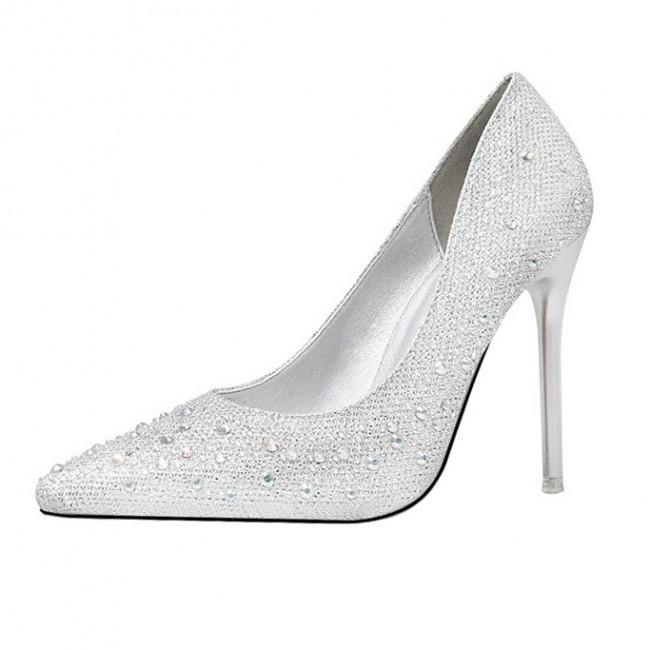 Silver Rhinestone Pointed Toe Stiletto Heels Shoes.SKU: ML-006.Occasion: Casual. Dress. Office & Career. Party & Evening. Wedding....