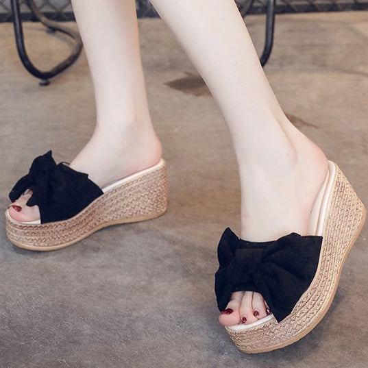 Suede Wedge Heel Sandals Shoes With Bowknot. SKU: ML-0071. Occasion: Casual. Dress. Styles: Peep Toe. Platform. Wedges....