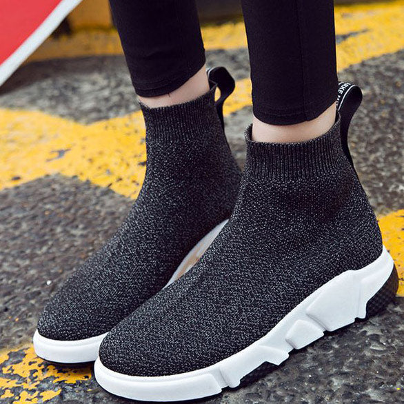 Wide Fit Sock Comfort Knit Sneakers. SKU: ML-0081. Occasion: Casual. Outdoor. Styles: Comfort. Color: Black. Silver. Upper...
